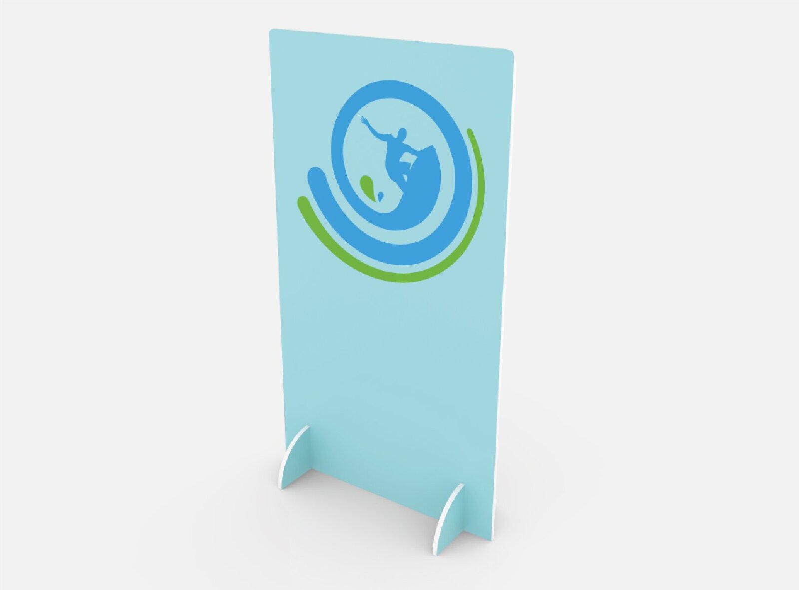 Totem pubblicitario in Foamboard 16mm, indistruttibile, con piedini a mezza luna. Laminabile in poliestere lucido, grafica e bordatura personalizzabili.