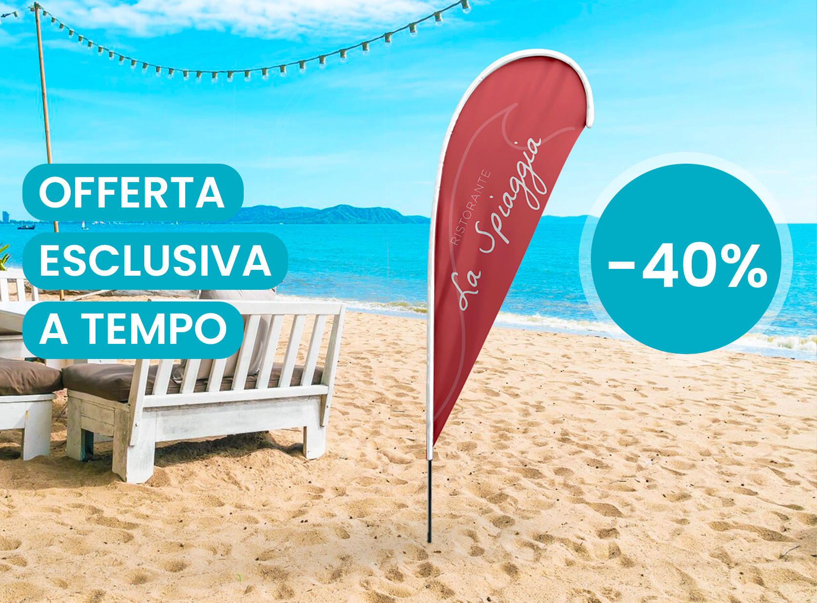 Bandiera a Goccia Small stampa sublimatica monofacciale in alta definizione con colori passanti su telo nautico antivento. Dimensioni 95,2x221 cm.